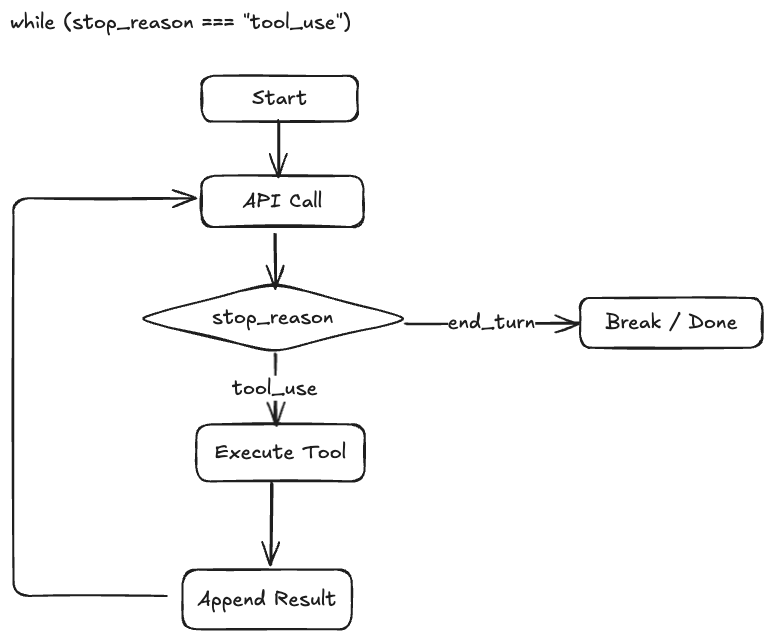 每个 Agent 都是一个循环,它会持续调用模型,直到模型发出 “停止” 指令。