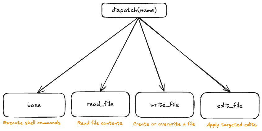 # 1. 每个工具有一个处理函数。路径沙箱防止逃逸工作区。